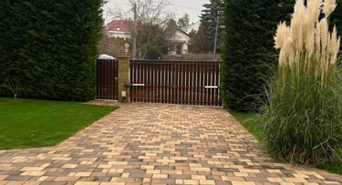 A diósdi családi ház udvarán teljes körű térkövezési munkát végeztünk, amely során az elöregedett burkolatot modern, esztétikus és időtálló térkőre cseréltük. A precíz alapozás és a gondosan megtervezett mintázat biztosítja, hogy a burkolat hosszú éveken át stabil maradjon, miközben esztétikailag is jelentősen emeli az ingatlan értékét. A megrendelő kérésére a kialakítás harmonizál a ház és a kert stílusával, így egy rendezett, letisztult és könnyen karbantartható udvar született.