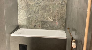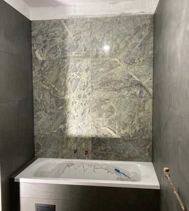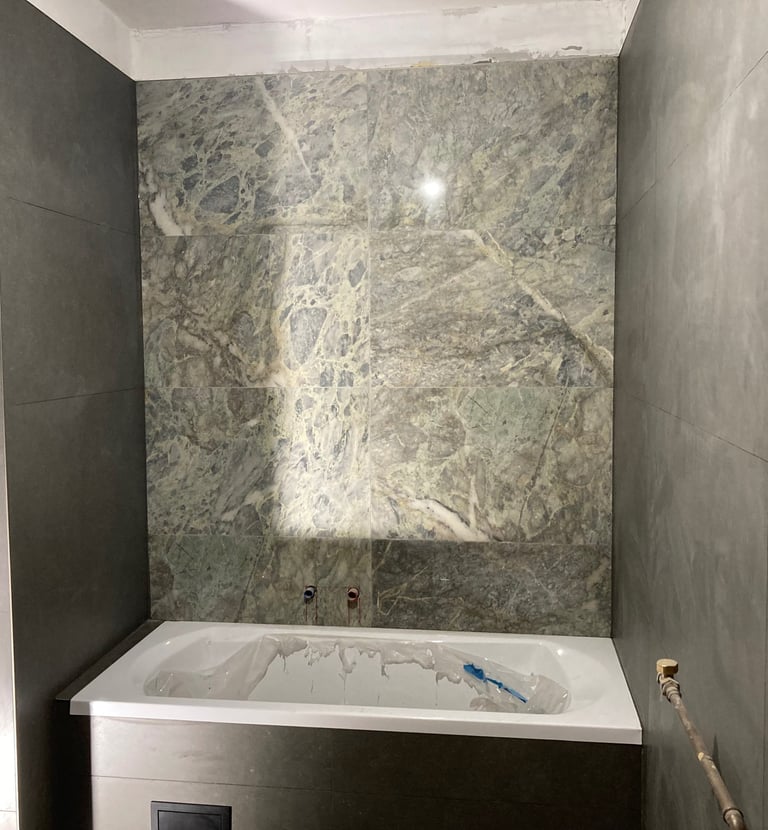 Ezen a budapesti projekten a teljes fürdőszoba megújításáért feleltünk, a tervezéstől a kivitelezésig. A korszerű burkolatok, az új kád kialakítása és a precíz vízvezeték-szerelés egy modern, letisztult és időtálló fürdőszobát eredményeztek. A megrendelő igényeihez igazodva minden részletet gondosan terveztünk meg, hogy a végeredmény esztétikus, praktikus és hosszú távon is megbízható legyen.